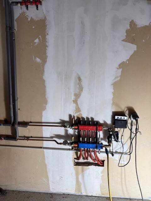 Remplacement des collecteurs de plancher chauffant par de nouveaux collecteurs en Inox et mise en place d'une vanne mélangeuse motorisée à 3 voies.